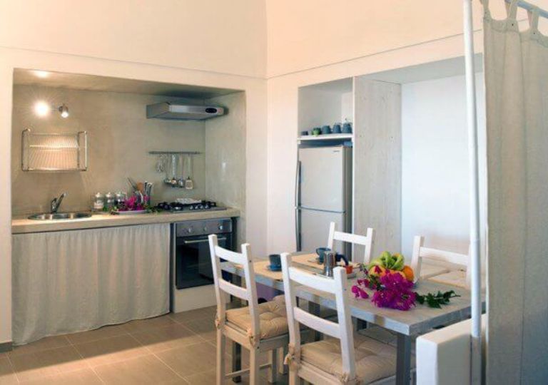 Le sistemazioni uniscono il fascino della tradizione all’eleganza contemporanea. Le Dammusi Suite, perfette per accogliere da 2 fino a 6 persone, offrono ambienti curati nei minimi dettagli, arredi raffinati e una vista mozzafiato sul mare. Gli ospiti possono scegliere tra suite con mini piscina privata ad uso esclusivo, per un’esperienza ancora più intima e riservata, oppure junior suite con piscina condivisa con un numero limitato di ospiti, mantenendo comunque un elevato standard di comfort e privacy.