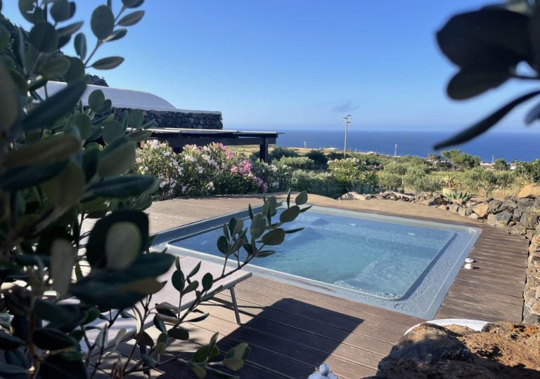 Circondato da ben otto ettari di paesaggio incontaminato, è un inno alla bellezza selvaggia di Pantelleria: qui, tra antichi muri a secco patrimonio della tradizione agricola locale, si estendono vigneti di moscato, rigogliose piante di capperi e ulivi secolari, simboli di una terra generosa e autentica. La strada d’accesso, riservata e senza uscita, garantisce agli ospiti un’atmosfera di totale privacy e tranquillità, ideale per chi desidera staccare dalla routine e riconnettersi con la natura.