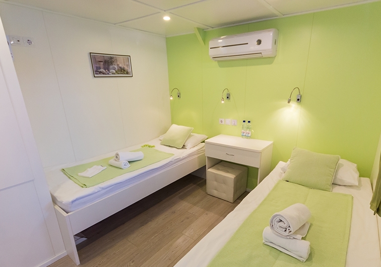 - N°2 notti di navigazione in imbarcazione Premium Superior con trattamento di mezza pensione: le navi Premium Superior sono navi mini deluxe di recente costruzione che offrono un comfort simile, ma sono di dimensioni più ridotte, da 38 a 41 m di lunghezza. Le cabine climatizzate sono di dimensioni da 8 a 14 m2 con letti matrimoniali o singoli, asciugacapelli e cassetta di sicurezza.