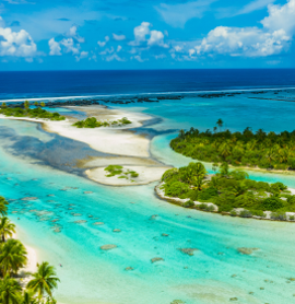 Le Maldive sono un Paese tropicale nell’Oceano Indiano composto da 26 atolli ad anello formati da più di 1000 isole coralline. Queste isole sono famose per le spiagge, le lagune di acqua blu e le lunghe barriere di corallo. Si estendono per 820 chilometri da nord a sud e per 120 km. da est ad ovest. 202 isole sono abitate, 87 sono isole dedicate esclusivamente ai resort.