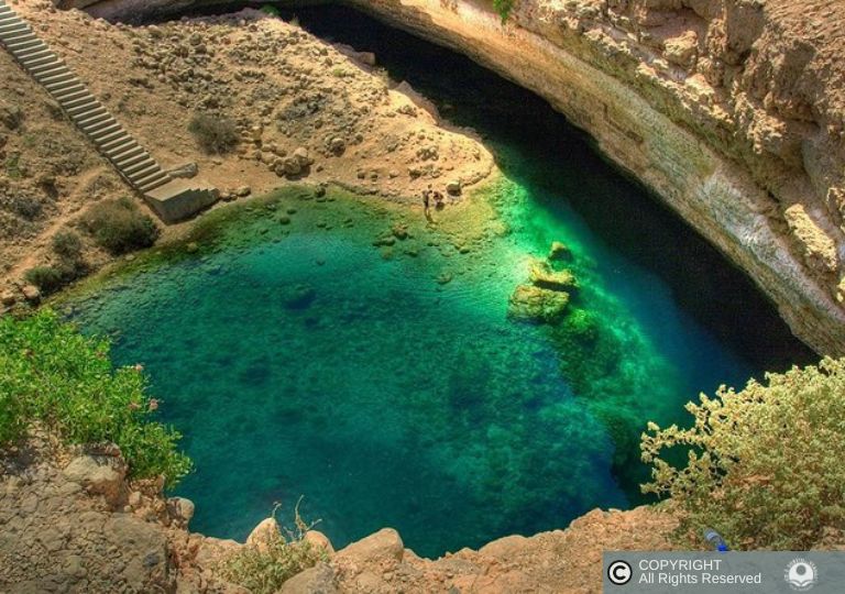 Alle 09:00 partenza per Bimah Sinkhole, un affascinante fenomeno naturale: una profonda depressione calcarea piena di acqua cristallina.