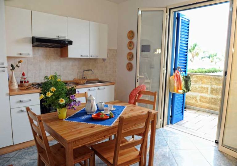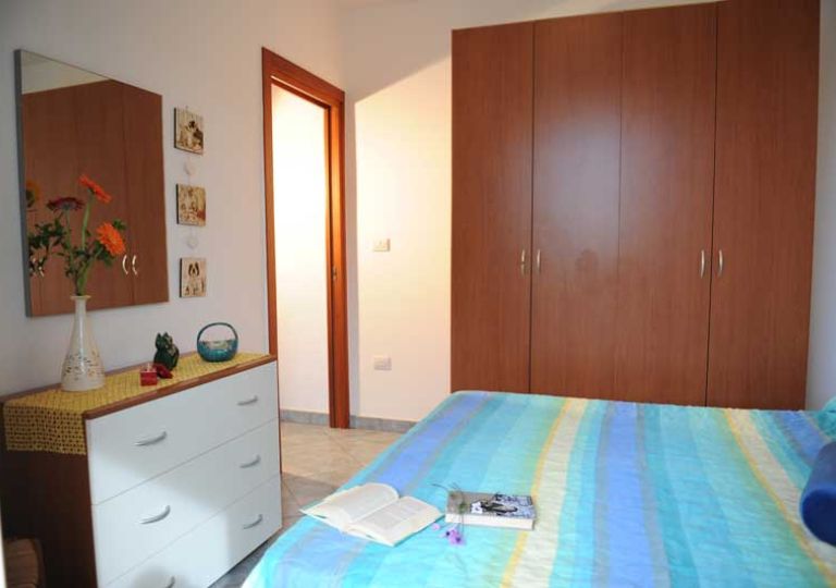 L’interno si compone di un soggiorno con angolo cottura, una camera matrimoniale con affaccio su balcone, una cameretta con letto a castello e un bagno con box doccia. La casa può ospitare comodamente fino a 4 persone. La superficie interna è di circa 45 mq. Completa la proprietà un posto auto riservato all’interno di un’area chiusa da cancello.