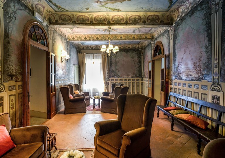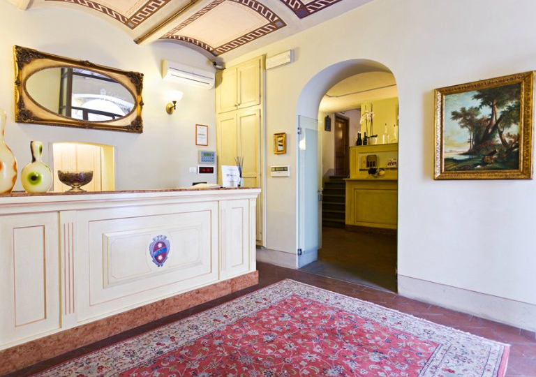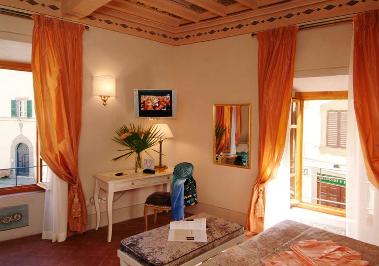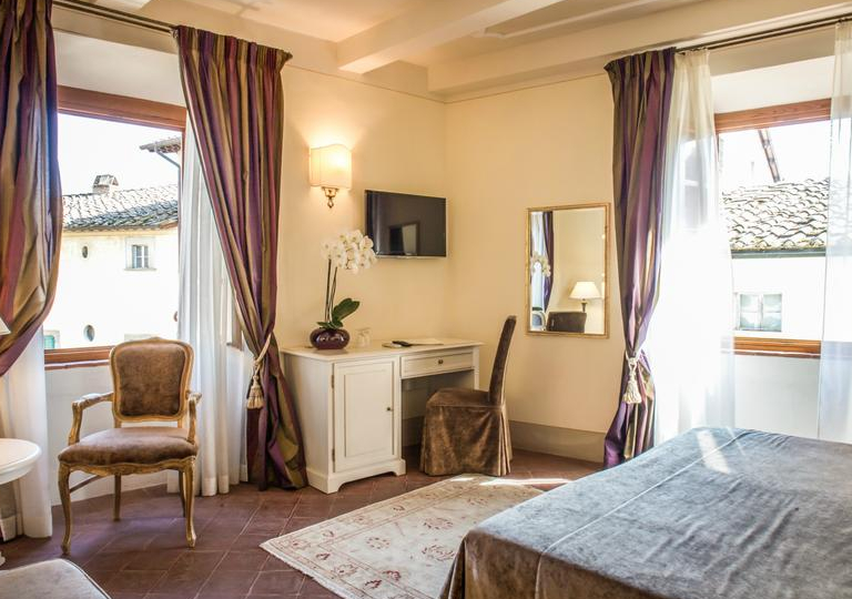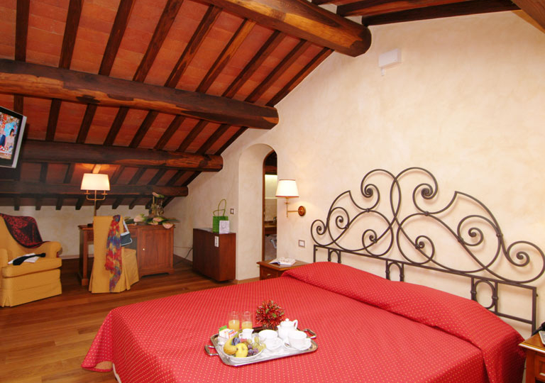 Le camere si dividono in Camere Classic, distinte dalla doccia idromassaggio, in Camere Superior, con vasca idromassaggio; Camere Deluxe; Junior Suite; la Suite con ingresso indipendente che si affaccia sul giardino del Palazzo e delle splendide mansarde con il tipico parquet e i letti in ferro battuto Toscani.